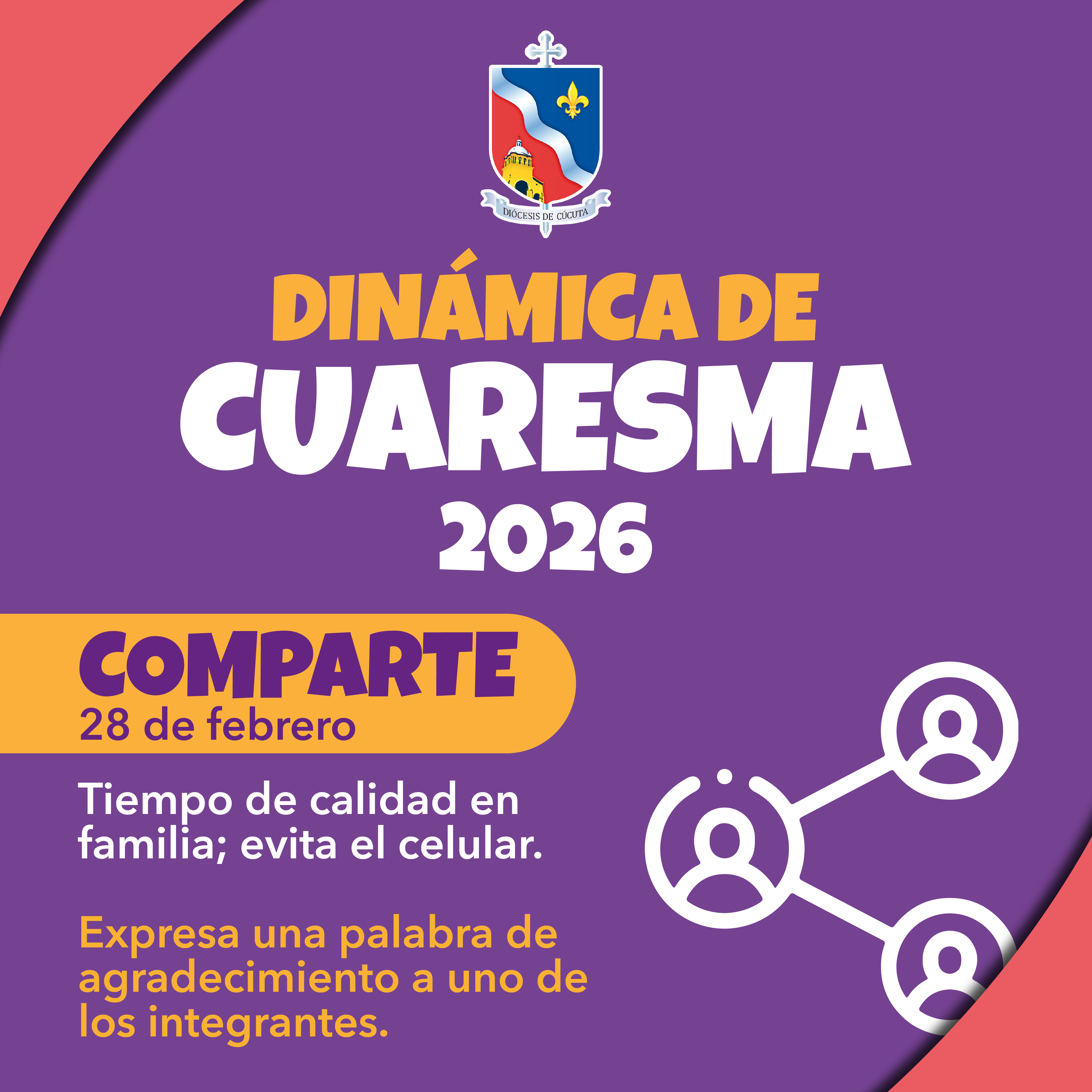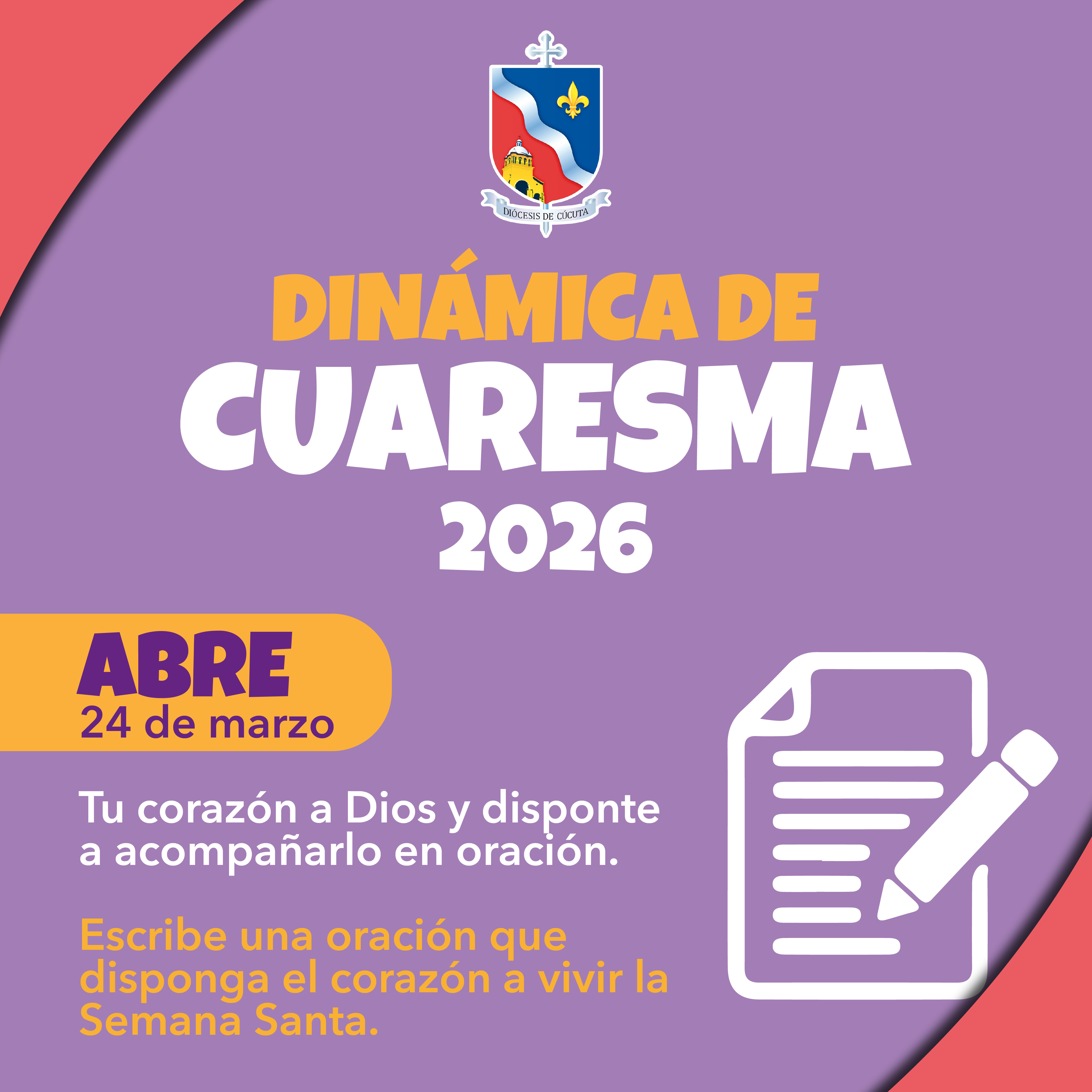 Dinámica de Cuaresma 2026Por Prensa / febrero 18, 2026 Descargue los siguientes materiales 18 de febrero 19 de febrero 20 de febrero 21 de febrero 22 de febrero 23 de febrero 24 de febrero 25 de febrero 26 de febrero 27 de febrero 28 de febrero 01 de marzo 02 de marzo 03 de marzo 04 de marzo 05 de marzo 06 de marzo 07 de marzo 08 de marzo 09 de marzo 10 de marzo 11 de marzo 12 de marzo 13 de marzo 14 de marzo 15 de marzo 16 de marzo 17 de marzo 18 de marzo 19 de marzo 20 de marzo 21 de marzo 22 de marzo 23 de marzo 24 de marzo 25 de marzo 26 de marzo 27 de marzo 28 de marzo 29 de marzo Comparte en: Haz clic para compartir en Facebook (Se abre en una ventana nueva) Facebook Haz clic para compartir en X (Se abre en una ventana nueva) X